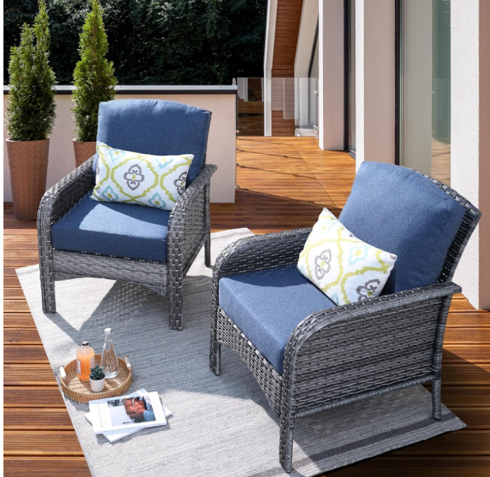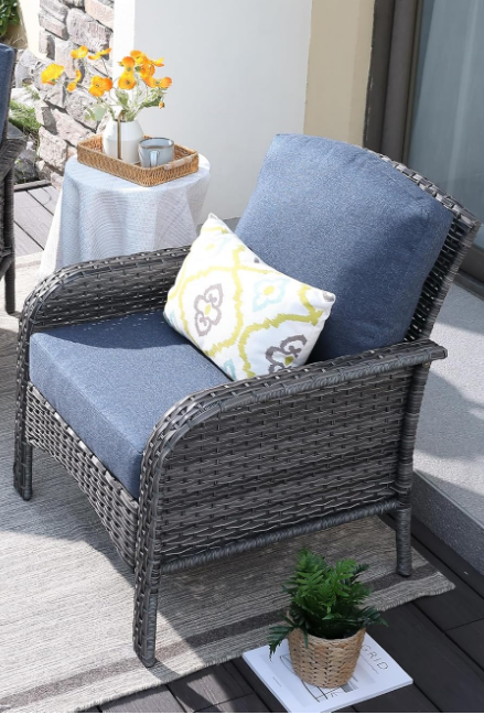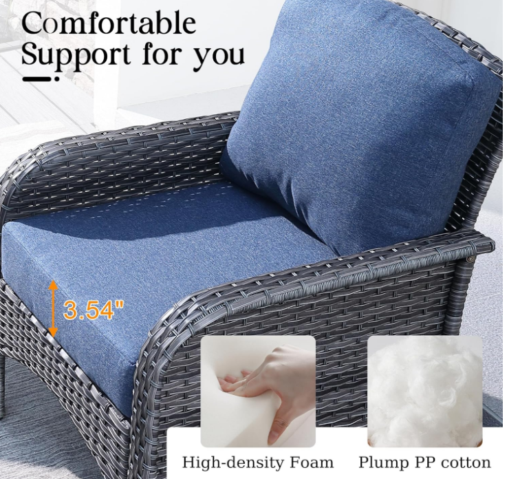 Premium Wicker: Made of powder-coated metal frame, covered with weatherproof and PE rattan, hand-woven wicker makes the whole set of chairs more sturdy.