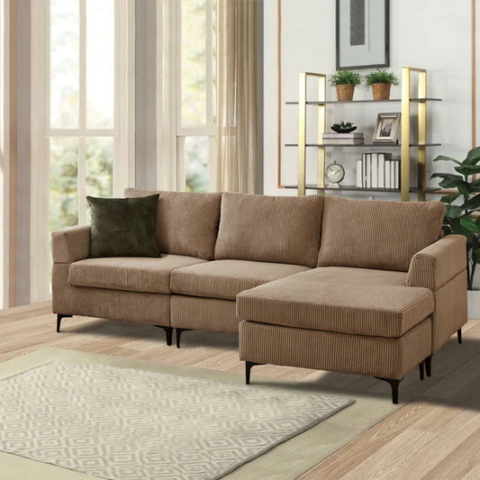 HOOOWOOO 96.4" Living Room Sofa Reversible Chaise Corduroy Fabric with Ottoman
