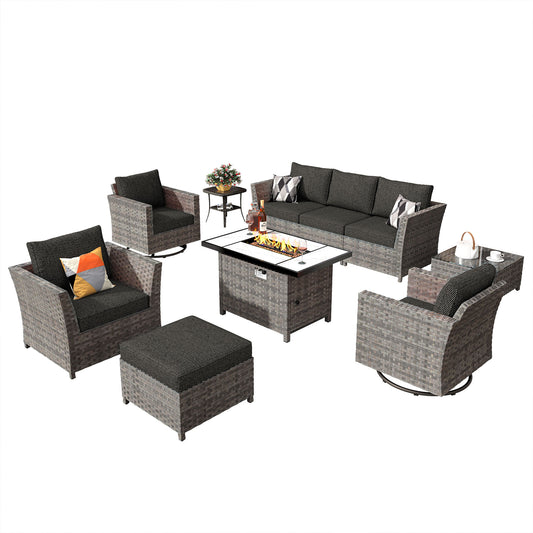 HOOOWOOO New Rimaru Series Patio Furniture Set 12-Piece with 42"Rectangle Fire Pit Table Minimal Assembly