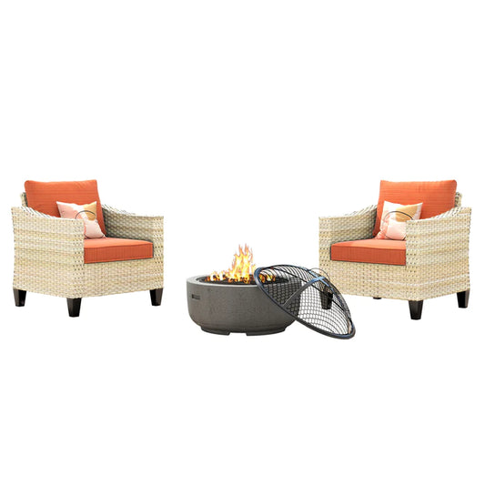 HOOOWOOO Athena Series Outdoor Patio Furniture Set with Fire Pit 3-Piece