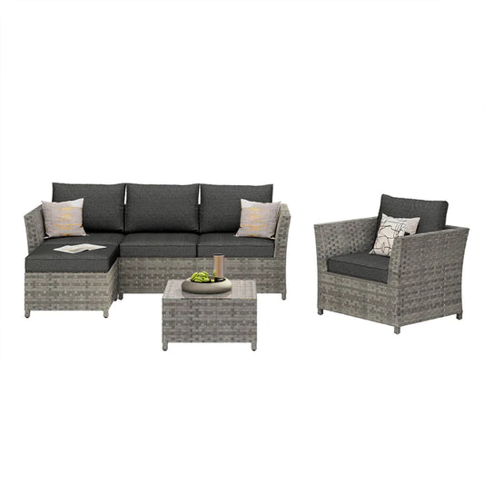 HOOOWOOO Athena Series Outdoor Patio Furniture Set 5-Piece with Cushions All Weather Wicker