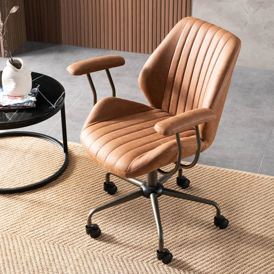 HOOOWOOO Office Chair Suede Fabric for Executive and Home Office Ergonomic Chair-Light Brown