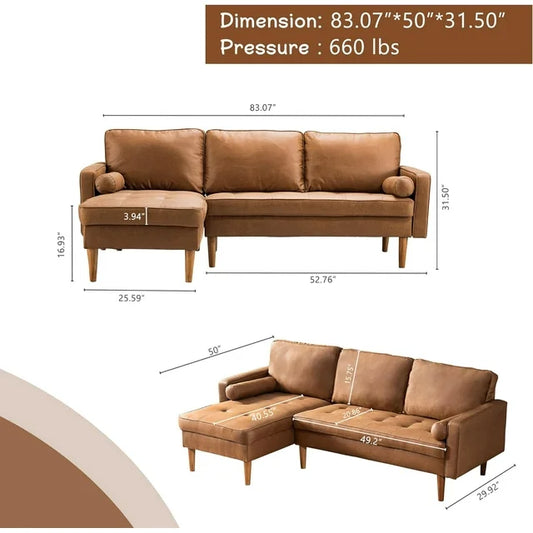 HOOOWOOO L-shape Sectional Sofa Couch,3-seat Suede Fabric Sofa Modern Accent Couch Lounge for Small Spaces(Left Chaise,Light Brown)