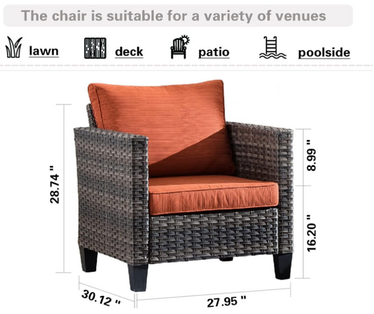 OOBOLT Outdoor Chair Modern Style Patio Chairs of PE Rattan with Comfortable Ergonomic Cushions for Balcony,Yard and Garden