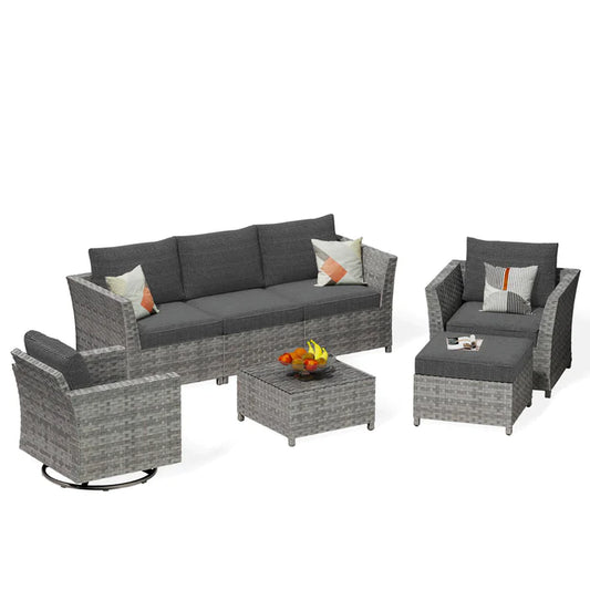 HOOOWOOO New Rimaru Series Patio Furniture Set 7-Piece include Swivel Chairs Set Minimal Assembly